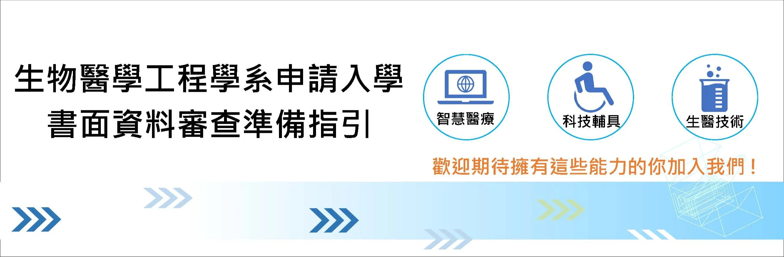 生物醫學工程學系融合醫學、工程與資訊科技,培養能將科技實際應用於醫療與健康照護的專業人才。本學系大學部學習指引,清楚說明課程規劃、核心能力培養與升學就業方向,協助高中生快速了解未來四年的學習重點。無論你對醫療儀器、智慧醫療、生醫材料或工程應用有興趣,都能在這裡找到屬於自己的發展方向,提前布局你的醫療科技未來。